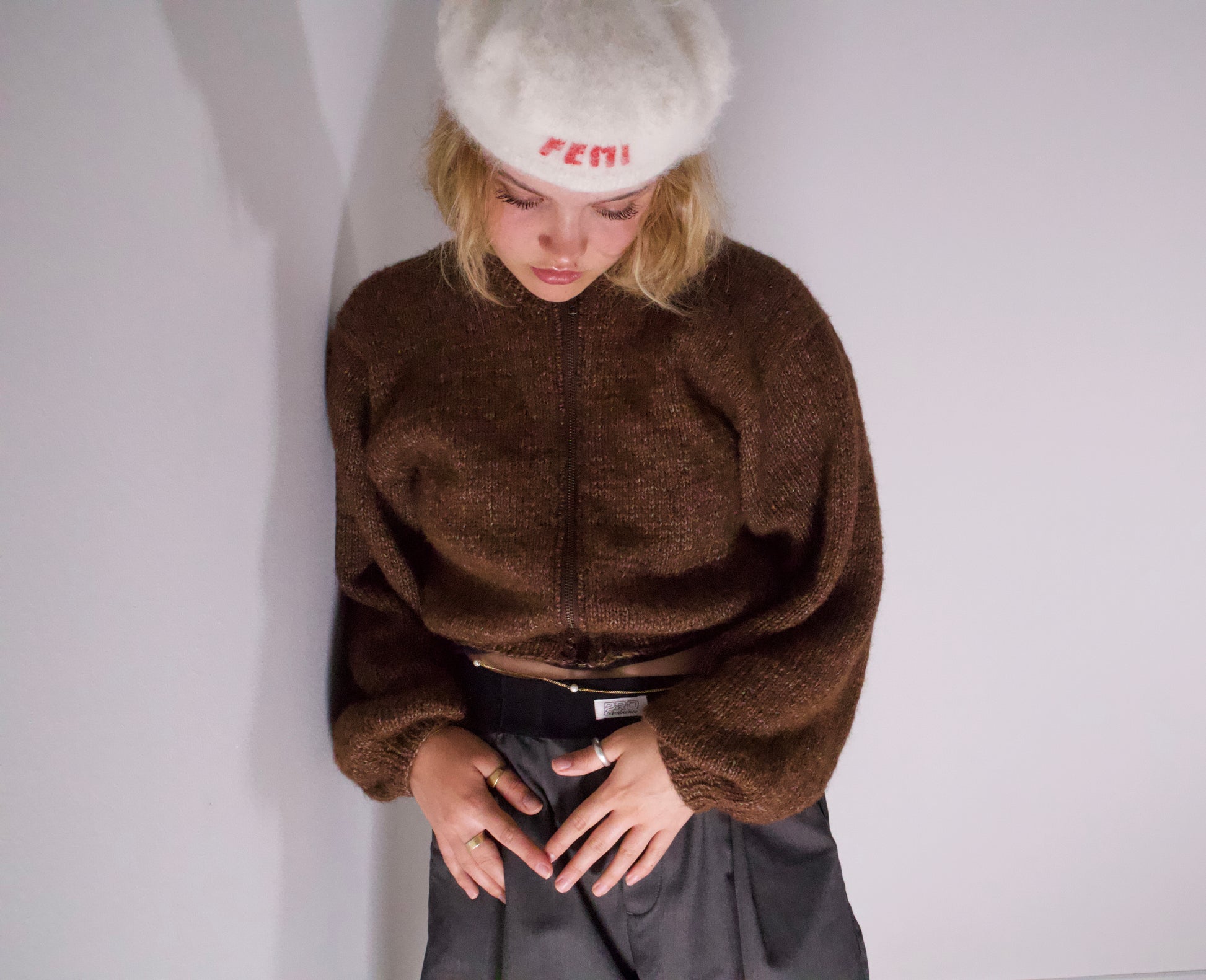 Mængde: Du skal bruge 250 meter blowgarn + 250 meter mohair garn + en lille garnrest til ”Femi” broderiet.