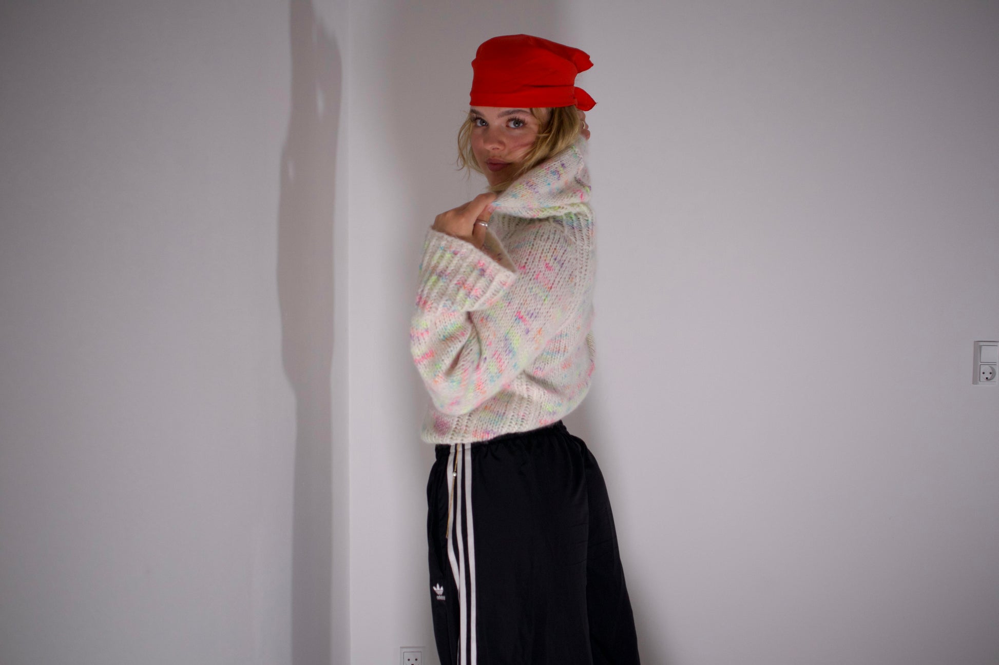 Størrelsesguide: Sweateren skal gerne have et bevægelsesrum på ca. 20 cm. Hvilket betyder at sweateren bør være ca. 20 cm større end dig i omfang.